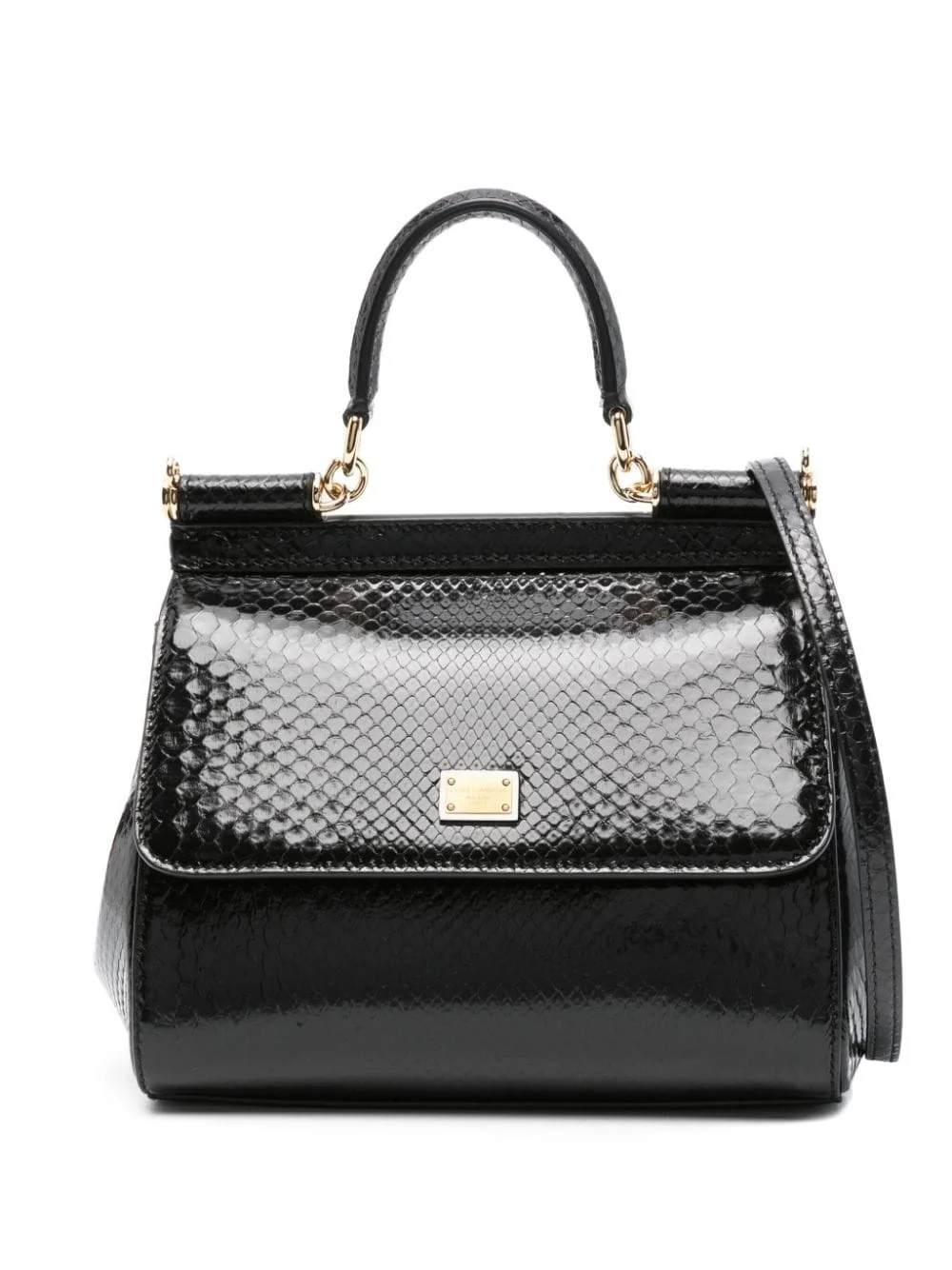 medium Sicily tote bag Highlights - Black - Snakeskin effect - Single rolled top handle - Adjustable detachable shoulder strap - Foldover top with magnetic fastening - Logo plaque - Main compartment - Internal slip pocket - This piece comes complete with a protective dust bag. Made in Italy Composition Outer: Calf Leather 100% SIZE & FIT Model measurements Height 5 ft 9 in(1.75 m) Bust/Chest 34.64 in(88 cm) Hips 36.61 in(93 cm) Waist 26.37 in(67 cm) Measurement DEPTH 3.93 in(10 cm) HANDLE 3.54 in(9 cm) HEIGHT 7.08 in(18 cm) STRAP 44.09 in(112 cm) WIDTH 7.87 in(20 cm)