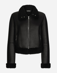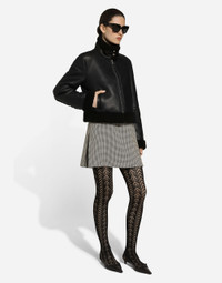 Inspired by 80s fashion photography, the Black Sicily collection masterfully blends masculine and feminine elements, pairing tailored cuts and corset details for the FW 24/25 season. A new vision of the iconic Nero Sicilia black is conveyed through contemporary and sensual looks: jackets and skirts in all-over glen plaid pair with openwork socks, while the 50s-inspired Mun shoes with Eva heel go with the houndstooth Sicily bag featuring crocodile-print leather inserts. Merino shearling jacket: • Black • High neck with press-stud buttons • Long sleeves • Side pockets • Zipper fastening • The piece measures 51 cm from the center back on a size IT 40 • The model is 175 cm tall and wears a size IT 40 • Made in Italy External composition: 100% Lambskin