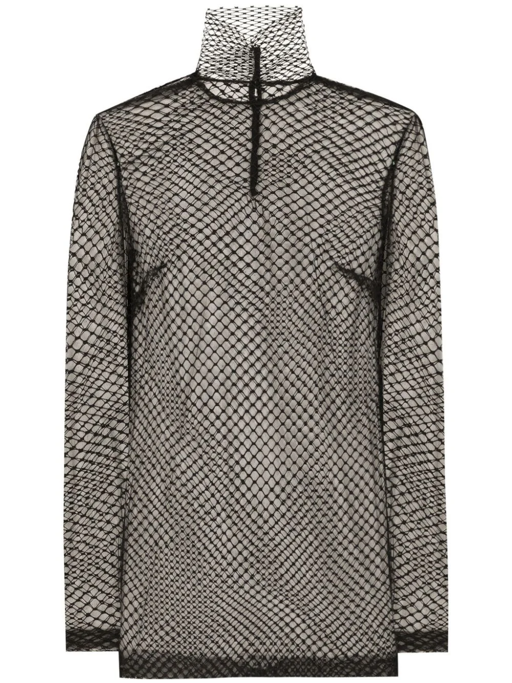 Mesh blouse Highlights - Black - Cotton blend - Mesh design - High neck - Straight hem - Long sleeves Made in Italy Composition Lining: Polyamide 100% Outer: Cotton 84%, Polyamide 16%