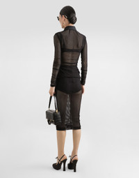 The Spring/Summer 2025 Women’s Collection is celebrating Italian beauty through bold and charismatic femininity. The 50s-inspired lingerie is the star, intermingling with fitted dresses, corsets and oversize trench coats. The iconic jackets have been updated with cropped cuts and modern inserts, while the floral prints add a romantic edge. The eveningwear shines with light fabrics and crystals, accompanied by look-defining accessories, from iconic bags to the cross earrings. Stretch mesh calf-length skirt: • Black • High-waisted • Unlined • Rear zipper and hook-and-bar fastening • The piece measures 75 cm from the waist down on a size IT 40 • The model is 175 cm tall and wears a size IT 40 • Made in Italy External composition: 93% Polyamide 07% Spandex