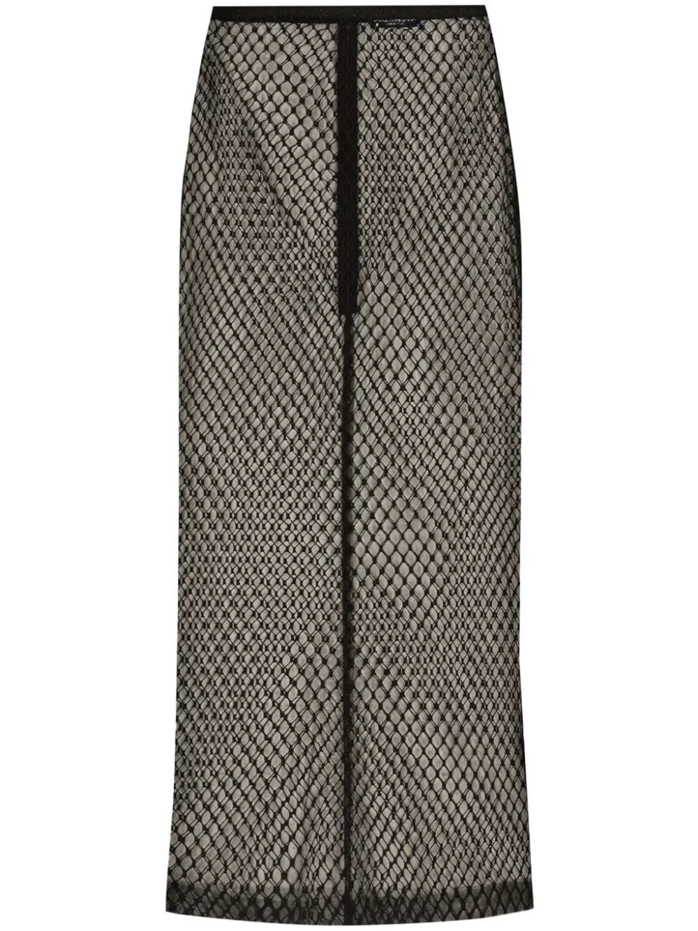 mesh pencil skirt Highlights - Black - Mesh design - Sheer - Cut-out detailing - Below-knee length - Rear zip fastening Made in Italy Composition Lining: Polyamide 50%, Silk 46%, Spandex/Elastane 4% Outer: Cotton 84%, Polyamide 16%