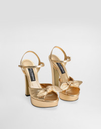 This sandal in mordore nappa leather is the perfect accessory to complete a formal look with a touch of minimalist and contemporary elegance. Sandals in mordore nappa leather: • Gold • Bianca shape • Leather sole with DG logo • Open toe leather insole with logo label • DG crossed logo • Gold plating • Item equipped with black cotton bag and black embossed box • Heel height 135 mm • Platform height: 30 mm • Made in Italy External Composition: 100% Lambskin Internal Composition: 80% Lambskin, 20% Goatskin This product is made with leather from tanneries certified according to environmental standards.