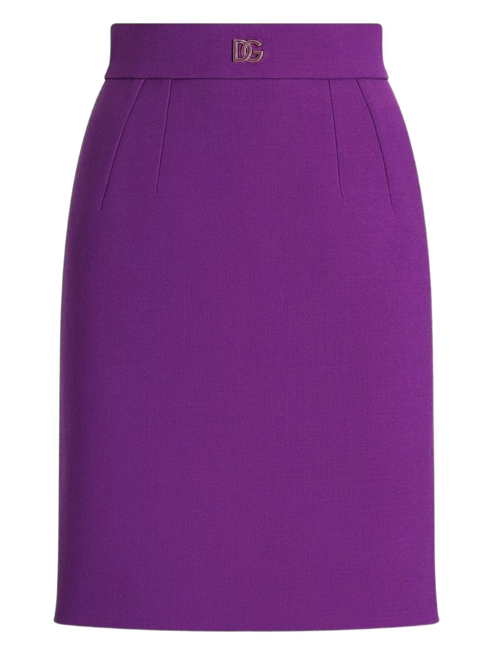 DNA wool mini skirt Highlights - Amaranth purple - Rear zip fastening - Gold-tone logo plaque - Straight hem - Thigh-length Made in Italy Composition Lining: Silk 92%, Spandex/Elastane 8% Outer: Virgin Wool 100% Washing instructions Read Manufacturer Guidelines