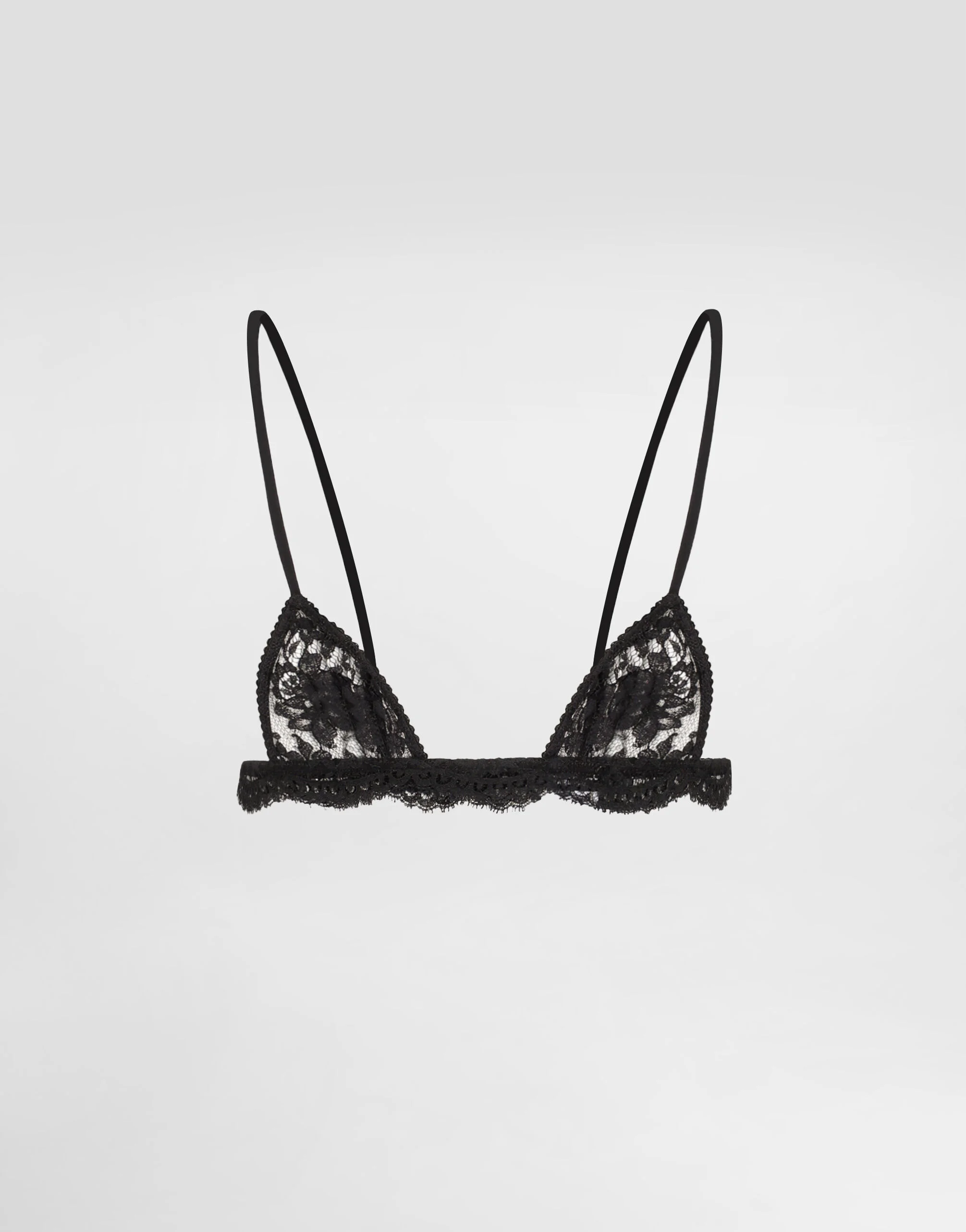 In the Fall/Winter 2025 Fashion Show Collection, shearling jackets, in fur-free versions, reveal slip dresses and create contrast' plays while denim welcomes fabric or Leo print inserts. Sweatshirts are the result of long experimentation with volumes. Evening looks become precious thanks to dresses with special embroideries and luminous touches of sequins and crystals. Sheepskin inserts also unite hats, shoes, and bags, including those with pockets. This non-wired lace bra is the ideal accessory for those looking for a touch of elegance and comfort in an intimate garment. Micro triangle lace bra: • Black • Lace for underbust with internal crepe stripe • Flat crepe shoulder strap with adjuster at the back • With back hook closure • Made in Italy External Composition: 66% Cotton, 28% Polyamide, 5% Silk, 1% Elastane