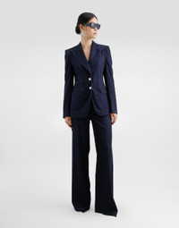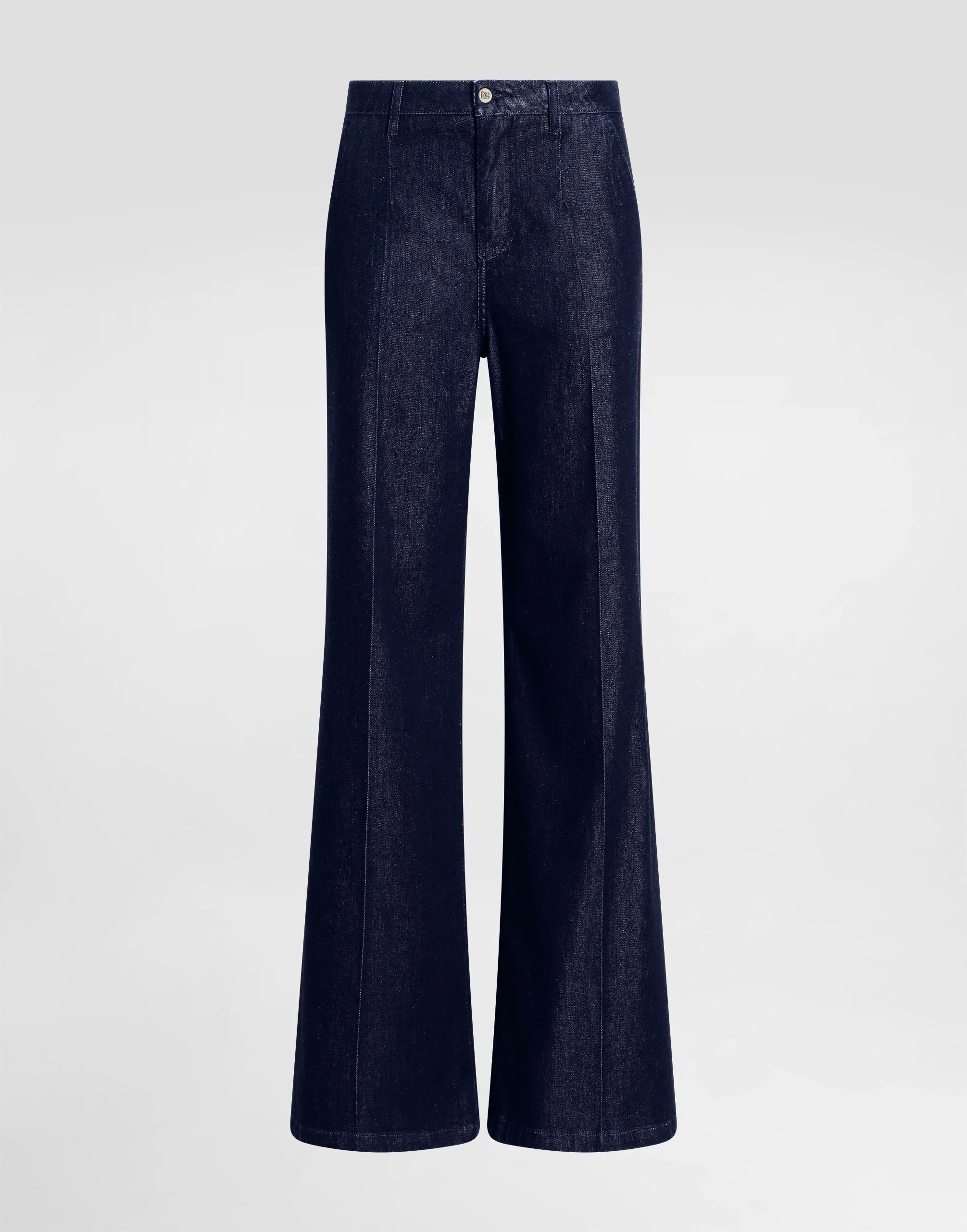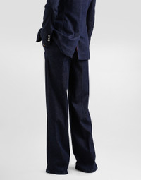 Cotton denim and silk palazzo pants: • Blue • High-waisted • Slant pockets • Pressed pleat • Belt loops • Inner leg: 89 cm • Hem: 32 cm • Zipper and branded metal button fastening • The model is 175 cm tall and wears a size IT 40 • Made in Italy External composition: 43% Cellulose Fiber 28% Cotton 22% Modal 5% Silk 2% Spandex