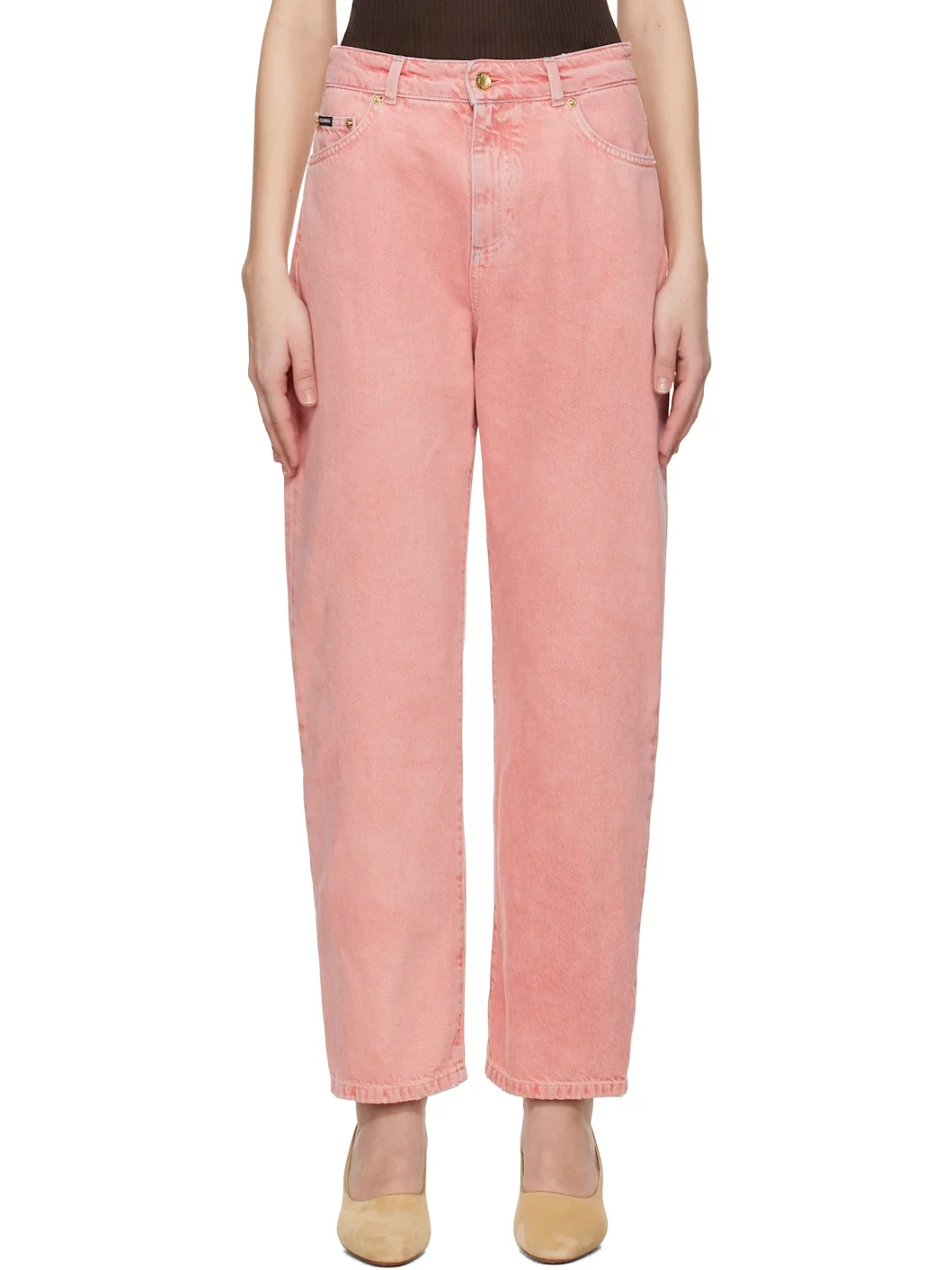 Pink Five Pockets Regular Waist Jeans