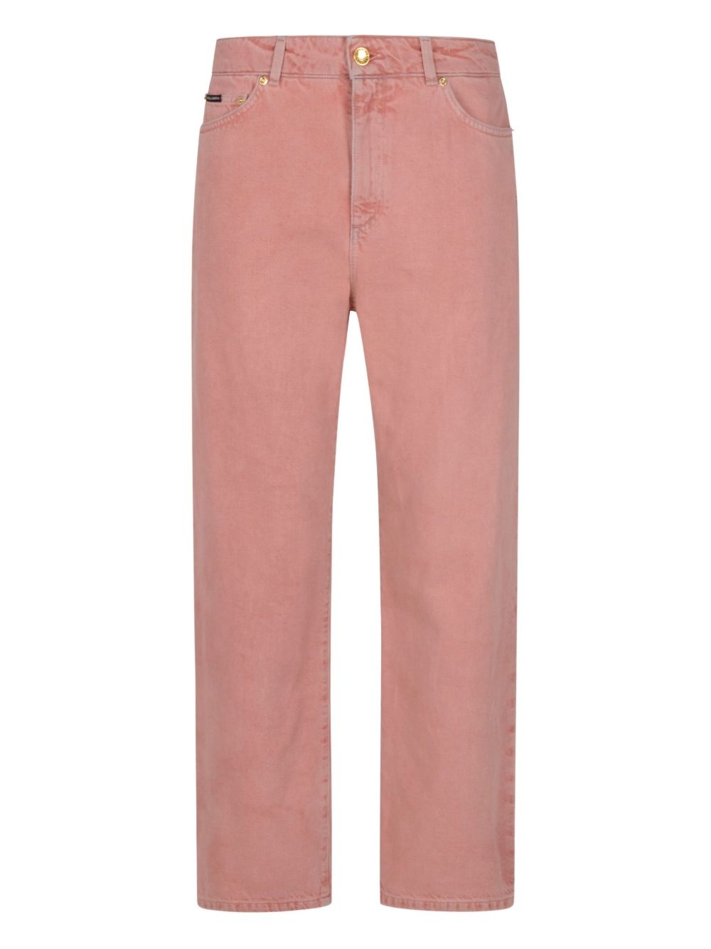 straight-leg jeans Highlights - Pink - Logo plaque - Front button fastening - Belt loops - Classic five pockets Made in Italy Composition Cotton 100%