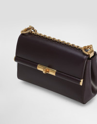 Featuring a sophisticated and understated line, this new Marlene bag comes in boarded calfskin and has a sliding chain strap. Hand-grained calfskin Marlene shoulder bag: • Burgundy • Front flap with branded turn-lock fastening • Adjustable chain strap • Flat pocket on back • Nappa leather lining and flat pocket • Metal feet studs on the base • Item comes with a branded dust bag • Measurements: H18 x W10.6 x D7 cm • Made in Italy External composition: 100% Calfskin Internal composition: 70% Lambskin 30% Calfskin
