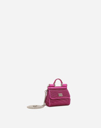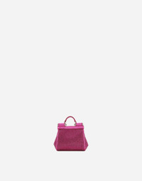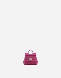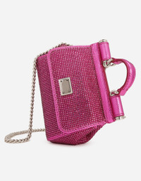 A quintessential brand icon, this Sicily mini bag comes in satin. Embellished with rhinestones all over, it comes with the branded plate featuring two metal electroplated finishes. Mini satin Sicily bag with fusible rhinestones: • Fuchsia • Front flap with hidden magnetic fastening • Branded tag featuring two metal electroplated finishes • Foiled iguana-print calfskin top handle • Chain strap • Satin lining • Item comes with a branded dust bag • Measurements: H9.5 x W11 x D6 cm • Made in Italy External composition: 58% Viscose 27% Silk 15% Calfskin Internal composition: 58% Viscose 22% Silk 10% Calfskin 7% Polyamide 3% Polyurethane
