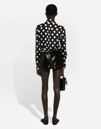 The FW24/25 Mambo Collection is rewriting the rules of Italian elegance, merging the sophisticated style of the 1940s and 1950s with the iconography of American pin-ups. The unmistakable polka-dot motif takes center stage, coming in a variety of shapes and sizes and adorning tulle, charmeuse, twill, silk and poplin, giving life to looks distinguished by black and white accessories and details. An homage to the beauty of Italy and its traditions, the distinctive details of Dolce&Gabbana’s creations. Miniskirt with micro-sequin embellishment: • Black • Low rise • Stretch silk lining • Rear zipper and hook-and-eye fastening • The piece measures 40 cm from the waist down on a size IT 40 • The model is 175 cm tall and wears a size IT 40 • Made in Italy External composition: 100% Polyester Internal composition: 92% Silk 08% Spandex
