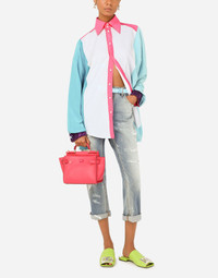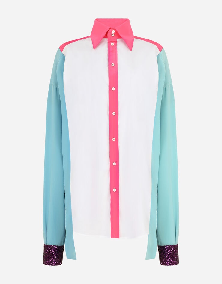 Dolce&Gabbana has decided to embark on an extraordinary journey through time with the Joy Therapy collection. It represents a leap back into the 80s, a decade filled with allure and eclectic suggestions that fully shine through in this shirt made from a mix and match of fabrics: • Shirt collar • Long sleeves • Oversize fit • Button fastenings with branded bottom edge • The piece measures 77 cm - 30.3 inches from the rear collar seam on a size IT 40 • The model is 175 cm - 68.9 inches tall and wears a size IT 40 • Made in Italy Care And Details External composition: 40% Cotton 30% Silk 17% Viscose 09% Polyamide 03% Polyester 01% Spandex