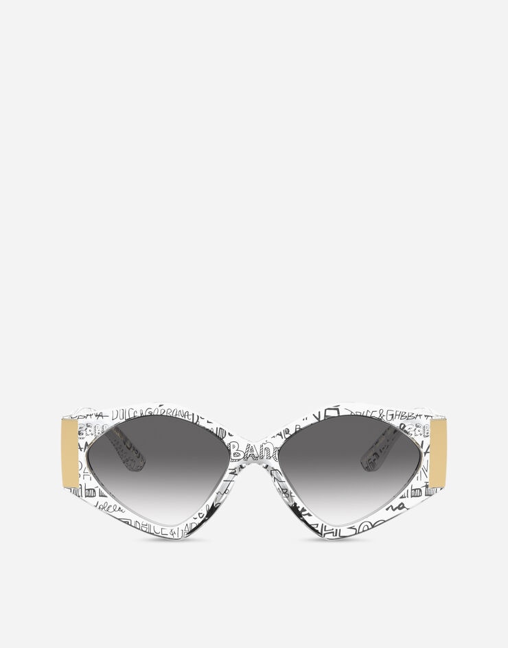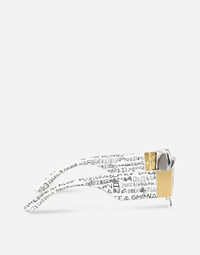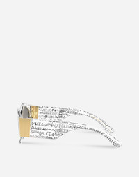• Black graffiti on shiny transparent acetate frame • Black graffiti on shiny transparent acetate temples • Black gradient lenses • 100% UV protection • Size lens - bridge - temple: 55 - 17 - 140 mm • Fitting: Universal • Packaging: Institutional • Made in Italy