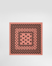 The Women’s DNA Collection is introducing a new side to femininity, which comes in shades of rose quartz, poised between sheerness and opacity, lightness and structure, formality and sensuality. Geometric Dolce Jackets, jacquard pajamas and floral brocade dresses intertwine with ultra-romantic designs. The DG print becomes an iconic statement, while Cordonetto lace and hints of Sicily Black embody the essence of a determined yet romantic femininity. Silk twill foulard with all-over DG logo print: • Pink • Hand-sewn hem • “Dolce&Gabbana” logo • Measurements: 50 x 50 cm • Made in Italy The difference in the print placement that you may find on this product is a feature of Dolce&Gabbana’s “Handmade” pieces. A detail that makes every garment or accessory unique and exclusive. External composition: 100% Silk