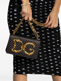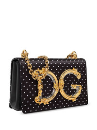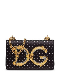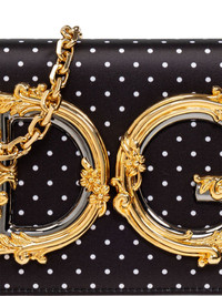 small DG Baroque satin crossbody bag Highlights - Black/white - Satin weave - Polka dot print - Logo print to the front - Sliding chain-link shoulder strap - Foldover top with magnetic fastening - Main compartment - Internal slip pocket - Internal logo plaque Made in Italy Composition Outer: Polyester 100%, Lambskin 100% SIZE & FIT Measurement HEIGHT 5.51 in(14 cm) WIDTH 9.05 in(23 cm)