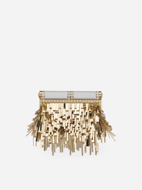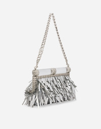 The new Bubù bag is a little gem that has been designed for special occasions. Sophisticated and elegant, it comes in soft mordore nappa leather and features all-over mirrored-effect fringing. Featuring crystal appliqués on the fastening, it flaunts the new detachable logo chain, which means it can also be carried by hand: • Tubular top fastening • Detachable palladium-plated chain with logo • Satin lining and a card slot compartment • Item comes with a branded dust bag • Measurements: 18 x 21.5 x 9 cm - 7.1 x 8.5 x 3.5 inches • Made in Italy Care And Details External composition: 100% Lambskin