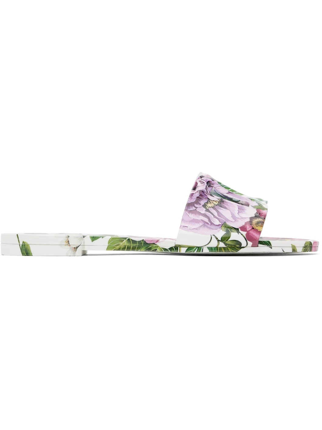 Rubber slip-on flat sandals in multicolor. · Floral pattern printed throughout · Open toe · Embossed logo and cutouts at vamp · Treaded rubber sole Supplier color: Print Upper: rubber. Sole: rubber. Made in Italy 251003F124000
