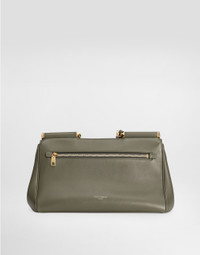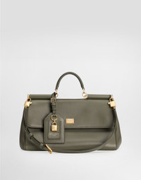 The My Sicily bag is a celebration of Italian craftsmanship, with vintage details that make it unique. Perfect for carrying the essentials with you, it adapts to any occasion with elegance. My Sicily medium handbag in plonge Calfskin: • Green • Leather handle, removable and adjustable shoulder strap • Measurements: H x W20 x D30 cm • Tuck-in closure • Vintage brass plating • External customization with monogalvanic plate and stamp with film • Interior with zip pocket • Item equipped with a logo bag and pre-assembled box • Measurements: H20 x W30 x D13 cm • Can hold keys, card holder and phone • Made in Italy External Composition: 95% Calfskin, 5% PVC Internal Composition: 60% Cotton, 40% Calfskin This product is made with leather from tanneries certified according to environmental standards.