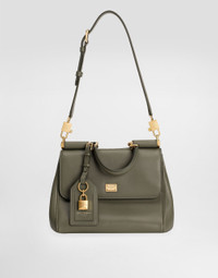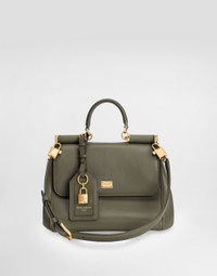 The My Sicily bag in plonge Calfskin with vintage brass finishes is a fine accessory that combines elegance and practicality, perfect for any occasion. My Sicily handbag in plonge Calfskin: • Green • Leather handles, removable and adjustable leather shoulder strap • Tuck-in closure • Vintage brass plating • External customization with monogalvanic plate and stamp with film • Internal customization with stamp with film • Interior with zip pocket • Item equipped with a logo bag and pre-assembled box • Measurements: H19 x L21 x D14 cm • Can hold keys, card holder and phone • Made in Italy External Composition: 95% Calfskin, 5% PVC Internal Composition: 60% Cotton, 40% Calfskin This product is made with leather from tanneries certified according to environmental standards.