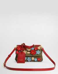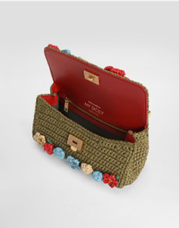 The My Sicily bag is a masterpiece of craftsmanship, with embroidered details that enhance the unique and sophisticated design. Perfect for adding a touch of elegance to your everyday look. My Sicily raffia crochet handbag: • Multi-colored • Leather handle, removable and adjustable leather shoulder strap • Tuck-in closure • Vintage brass plating • External customization with monogalvanic plate and stamp with film • Internal customization with stamp with film • Interior with zip pocket • Item equipped with a logo bag and a pre-assembled box • Measurements: H12 x W19 x D8.5 cm • Can hold keys, card holder and phone • Made in Italy External Composition: 70% Viscose, 25% Calfskin, 5% PVC Internal Composition: 60% Cotton, 40% Calfskin