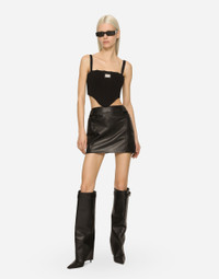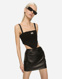 Nappa leather miniskirt: • Black • Low rise • Branded stretch satin jacquard lining • Rear zipper and hook-and-eye fastening • The piece measures 40 cm from the waist down on a size IT 40 • The model is 175 cm tall and wears a size IT 40 • Made in Italy Care And Details External composition: 70% Lambskin 30% Calfskin Internal composition: 62% Polyester 35% Polyamide 3% Spandex
