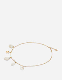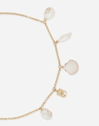 The Italian summers of the 1960s, the candid purity of white, the sophisticated elegance of the jet set of that era. The imagery of the FW24/25 Capri Collection encapsulates all this flawlessly. The pieces range from floaty poplin silhouettes or sack-style dresses and skirts, to brocade outerwear and floral-inlay fabric shirts. The iconic bags – the Logo Bag, the Sicily Bag and the Dolce Box – complement the looks, while the shoes come embroidered with designs inspired by the crystal-clear sea of Capri. Necklace with DG logo and shells: • Gold • Metal shells • Clasp fastening • Length: 45 + 5 cm • Nickel-free and hypoallergenic materials • Engraved logo • Made in Italy External composition: 100% Brass