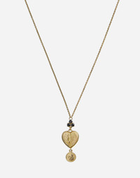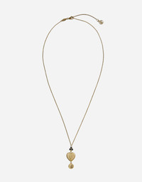 Necklace composed of a thin "belcher" chain and a heart pendant, connected to the main string through a clover made up of round black sapphires. The pendant, which has the "DOLCE&GABBANA" logo on the back is embellished with the words "I love you" and a medallion depicting a cherub. A spherical pearl has been added as the end of the adjustable chain. • Gold 18 Kt. •Length. 50 + 5 cm adjustable. • Gemstones. 3 round black sapphires, 1 spherical freshwater pearl • Made in Italy Add your personal touch to this item such as your initials or a customized message. Send the request to CustomerServiceJewelleryWatches@dolcegabbana.it If the item has been customized then it cannot be returned. Material: Yellow 18 kt Gold