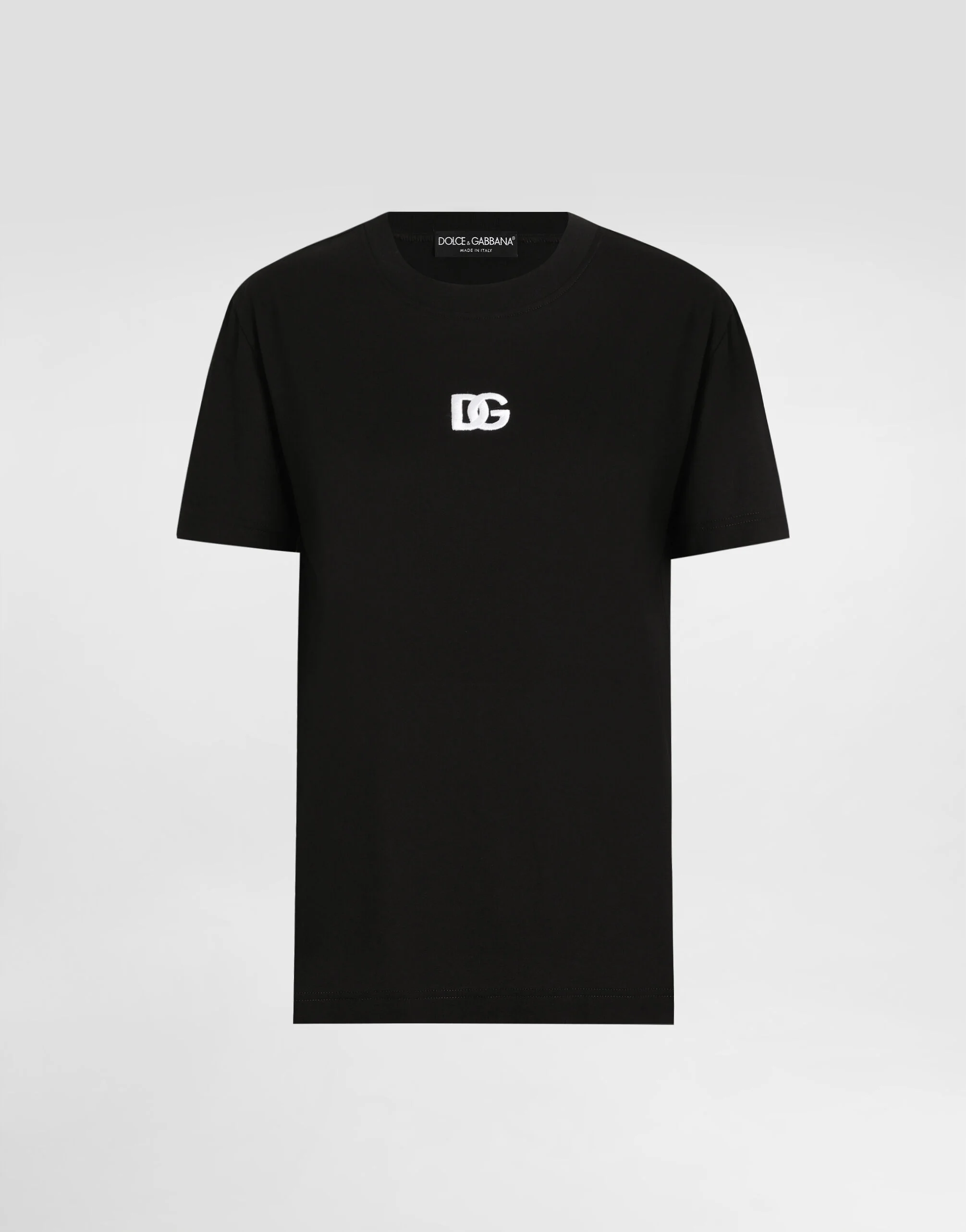 Dolce&Gabbana is creating a new DNA collection, using its style with a new concept of everyday elegance and apparel. Timeless, contemporary and traditional style, where sweatshirts, pants, T-shirts and sweaters are embellished by the DG logo, adding a touch of character to your outfits. Cotton jersey T-shirt with DG logo embroidery: • Black • Folded fine-rib round neck • Short sleeves • Comfort fit • The piece measures 63 cm from the back of the neck on a size IT 40 • The model is 175 cm tall and wears a size IT 40 • Made in Italy External composition: 100% Cotton