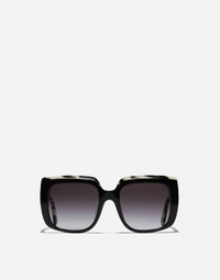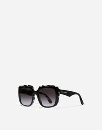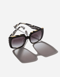 Retro design combined with luminous textures celebrate the colors & style icons of 60s •Black on zebra acetate temples • Light grey gradient black lenses • 100% UV protection • Size lens - bridge - temple: 54 - 20 - 145 mm • Fitting: Universal • Packaging: Institutional • Made in Italy undefined