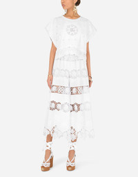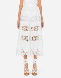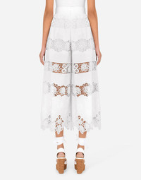 The Tradizione collection is inspired by manufacturing and craftsmanship that are worthy of being talked about through fashion to take Italian history and culture to the world. A single, simple color is the star. White that illuminates and brings joy. These loose poplin culottes with fine lace openwork will give you extremely feminine and romantic looks: • Stretch Dolce high waist • Unlined with stretch silk crepe de chine shorts • Inner leg: 59.5 cm - 23.4 inches • Hem: 52 cm - 20.5 inches • Invisible zipper on the center back and hook-and-eye fastening • The model is 175 cm - 68.9 inches tall and wears a size IT 40 • Made in Italy Care And Details External composition: 90% Cotton 10% Polyester