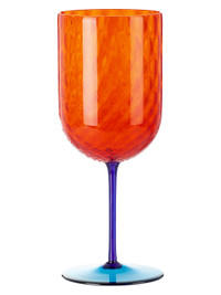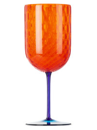 Hand-blown Murano red wine glass in orange, navy, and blue. - Logo etched at base - Hand wash - H9.5 x D3.75 Supplier color: Orange