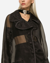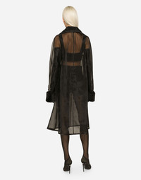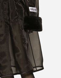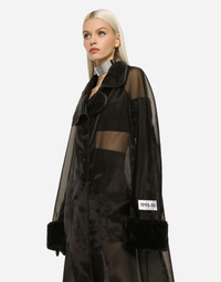 Technical organza trench coat with the Re-Edition label: • Notched lapels • Long sleeves with faux fur cuffs • Regular fit • “Kim Dolce&Gabbana” inner label • Double duchesse-covered button fastenings and fabric belt • The piece measures 109 cm from the rear collar seam on a size IT 40 • The model is 175 cm tall and wears a size IT 40 • Made in Italy Care And Details External composition: 90% Polyamide 10% Polyester
