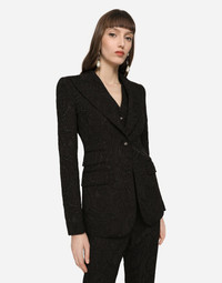 • Peak lapels • Long sleeves • Flap pockets • Leopard-print stretch satin lining • Canneté-covered button fastening and DG logo • The piece measures 70 cm from the rear collar seam on a size IT 40 • The model is 175 cm tall and wears a size IT 40 • Made in Italy Care And Details External composition: 86% Polyester 12% Polyamide 2% Spandex Internal composition: 97% Polyester 3% Spandex