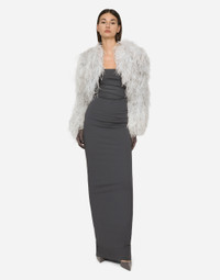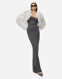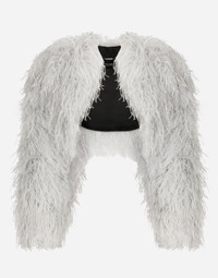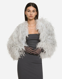 Ostrich feather bolero jacket: • Round neck • Long sleeves • Stretch silk satin lining • “Kim Dolce&Gabbana” inner label • Hook-and-eye fastening on the collar • The piece measures 36 cm from the rear collar seam on a size IT 40 • The model is 175 cm tall and wears a size IT 40 • Made in Italy Care And Details External composition: 100% Ostrich feathers Internal composition: 92% Silk 8% Spandex