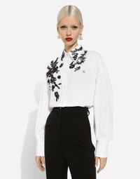 The DNA collection is distinguished by timeless shapes, bringing together three concepts: Sicilian flair, tailoring and sensuality. Nero Sicilia black and optical white predominate and pair with colors that catapult us onto the island of Sicily and make us dream. The designers channel the timeless wardrobe made up of creations that are instantly unmistakable in their simplicity, presenting us with sophisticated beauty loaded with meaning and symbolism that transcends fashion. Oversize cotton poplin shirt with lace appliqués: • White • Shirt collar • Long sleeves • Oversize fit • Button fastenings with branded bottom edge • The piece measures 90 cm from the rear collar seam on a size IT 40 • The model is tall • Made in Italy External composition: 98% Cotton 2% Polyester