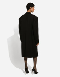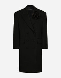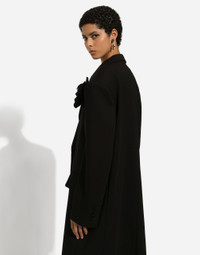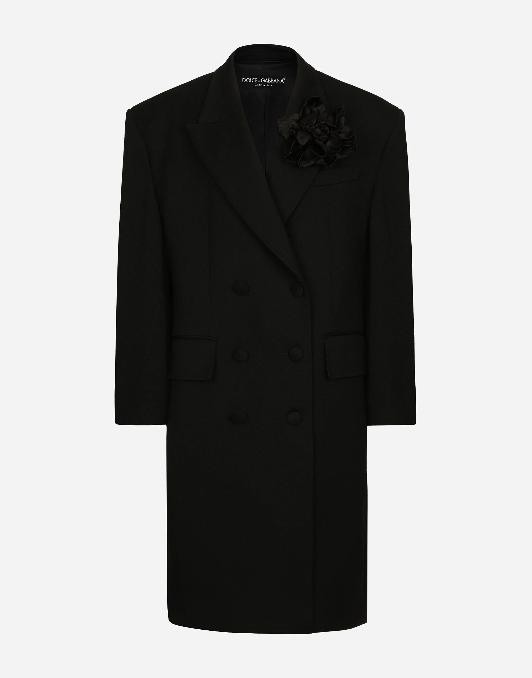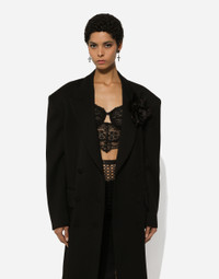 In the “WOMAN SS 24” Collection, the imagery of old Sicily interacts with the masculine, with sensual shapes, lace, nude tones and delicate overlays, to create pieces that move amid clean silhouettes, the elegance of the 1960s, the contrasts of black and white and luxurious textures. The designers are reworking their signature style and their iconic Sicilia black color to convey an aware, seductive and confident Sicilian WOMAN who is imbued with sensuality. Oversize double-breasted coat in stretch wool crepe: • Black • Peak lapels with satin flower appliqué • Long sleeves • Loose fit • Silk satin lining • Covered button fastenings • The piece measures 130 cm from the center back on a size IT 40 • The model is 175 cm tall and wears a size IT 40 • Made in Italy External composition: 100% Virgin Wool Internal composition: 100% Silk