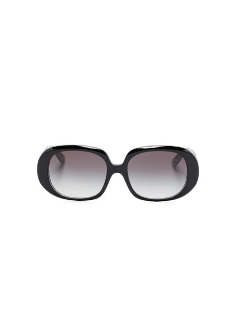 oversize-frame sunglasses Highlights - Black - High-shine finish - Oversize frame - Gradient lenses - Uv-protective lenses - Logo plaque at the arm - Straight arms - Curved tips - Leopard-print lining - These glasses come with a protective case. Made in Italy Composition Metal 100%, Acetate 100% SIZE & FIT Measurement Arm Length 5.7 in(14.5 cm) Bridge Width 0.66 in(1.7 cm) Lens Diameter 2.2 in(5.6 cm) Total Width 5.9 in(15 cm)