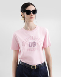 Dolce&Gabbana is creating a new DNA collection, using its style with a new concept of everyday elegance and apparel. Timeless, contemporary and traditional style, where sweatshirts, pants, T-shirts and sweaters are embellished by the DG logo, adding a touch of character to your outfits. Oversize cotton jersey T-shirt with raised DG logo embroidery: • Pink • Folded fine-rib round neck • Short sleeves • Comfort fit • The piece measures 63 cm from the back of the neck on a size IT 40 • The model is 175 cm tall and wears a size IT 40 • Made in Italy External composition: 100% Cotton