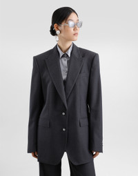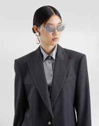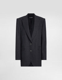 The Everyday Women's Collection reimagines contemporary daily wear with Dolce&Gabbana's signature style codes. Iconic fabrics mix with standout details like embroidered flowers, crystals, and jewel buttons, infusing elegance into every look. Gray animal print accented with green and purple, hyper-geometric jewelry, voluminous shapes and transparencies add unique touches. Men's tweed is reinvented with graphic twists, creating distinctive pieces that reflect refined sensuality. Oversize woolen jacket: • Gray • Peak lapels • Long sleeves • Welt pockets with flaps • Silk satin lining • DG-branded button fastenings • The piece measures 78 cm from the center back on a size IT 40 • The model is 175 cm tall and wears a size IT 40 • Made in Italy External composition: 100% Virgin Wool Internal composition: 100% Silk