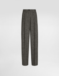 These wool blend trousers with dotted print are a perfect example of elegance and comfort, ideal for a sophisticated and modern look. Wool blend trousers with dotted print: • Multi-colored • Dolce waist with two pleats in front • French pockets • Double darts at the back with single welt pockets • 4 cm high belt with belt loops • Bottom 30 cm • Lined half leg • The model is 175 cm tall and wears size 40 IT • Made in Italy External Composition: 48% Virgin Wool, 35% Wool, 16% Polyamide, 1% Elastane Internal Composition: 93% Silk, 7% Elastane