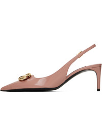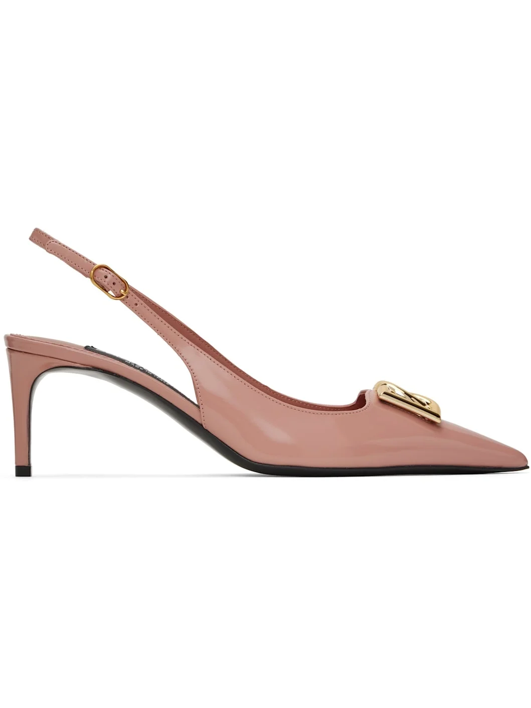 Polished calfskin heels in pink. · Pointed toe · Logo hardware and cutouts at vamp · Adjustable pin-buckle slingback strap · Buffed calfskin lining · Covered kitten heel with rubber injection · Polished leather sole with rubber injection · Heel: 2.5" Supplier color: Rosa Upper: calfskin. Sole: leather, rubber. Made in Italy 251003F122001