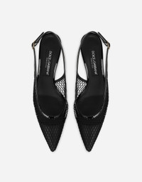 Patent leather and mesh slingbacks: • Mesh upper • 60-mm heel • Calfskin toe • Kidskin insole with branded label • Branded leather sole • Made in Italy Care And Details External composition: 82% Nylon 18% Calfskin Internal composition: 76% Goatskin 24% Calfskin