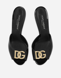 Patent leather mules with DG logo: • Patent leather upper • 85-mm heel • Kidskin insole with branded label • Branded leather sole • Made in Italy Care And Details External composition: 100% Calfskin Internal composition: 90% Goatskin 10% Calfskin