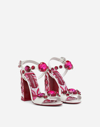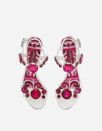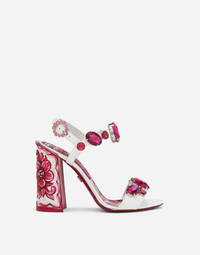 Patent leather sandals with stone embroidery and painted heel: • White • 105-mm heel • Strap with bejeweled fastening • Printed kidskin insole with branded label • Branded leather sole • Item comes with a branded dust bag • Made in Italy Care And Details External composition: 100% Calfskin Internal composition: 90% Goatskin 10% Calfskin