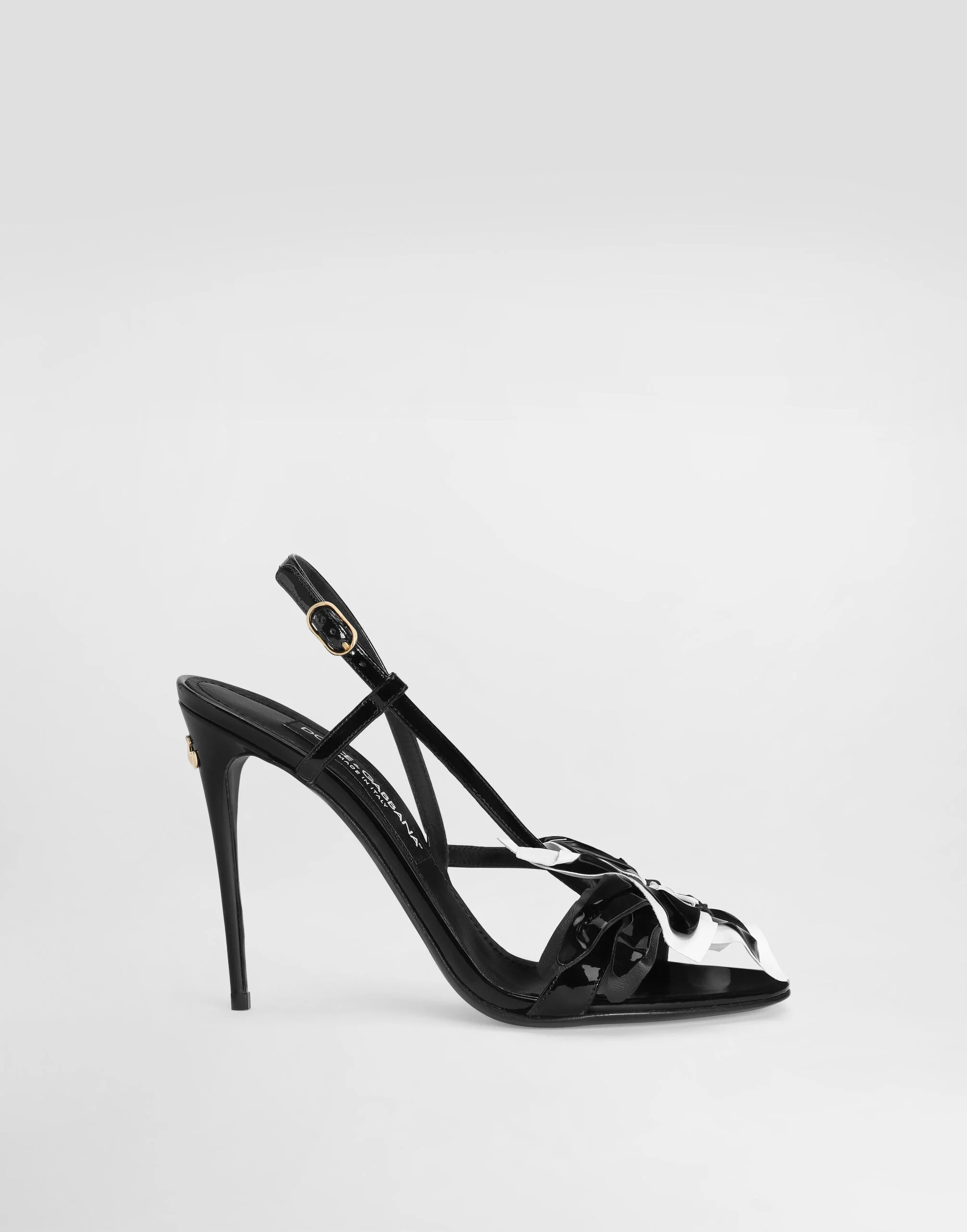 These new Keira sandals come in 100% patent leather with floral embroidery on the upper. Patent leather sandals with embroidery: • Black • 105-mm heel with DG logo • Leather insole with branded label • Branded leather sole • Item comes with a branded dust bag • Made in Italy External composition: 100% Calfskin Internal composition: 69% Goatskin 31% Calfskin