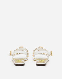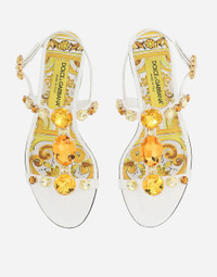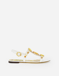 The new collection is inspired by the ancient ceramics of Caltagirone, where tones of white and yellow merge in a tribute to Sicilian craftsmanship and majolica tiles, reinterpreted in a contemporary way. Patent leather Bianca sandals with stone embroidery: • Yellow and white • Strap with bejeweled fastening • Printed kidskin insole with branded label • Branded leather sole • Item comes with a branded dust bag • Made in Italy The difference in the print placement that you may find on this product is a feature of Dolce&Gabbana’s “Handmade” pieces. A detail that makes every garment or accessory unique and exclusive. External composition: 100% Calfskin Internal composition: 69% Goatskin 31% Calfskin