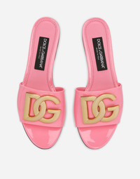Patent leather slides with DG logo: • Patent leather upper • Kidskin insole with branded label • Branded leather sole • Made in Italy Care And Details External composition: 100% Calfskin Internal composition: 59% Goatskin 41% Calfskin