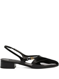 patent leather slingback pumps Highlights - Black - Patent leather - Slingback strap - Gold-tone logo buckle - Square toe - Low block heel Made in Italy Composition Sole: Calf Leather 100% Outer: Calf Leather 90%, Lamb Skin 10% Lining: Calf Leather 100%