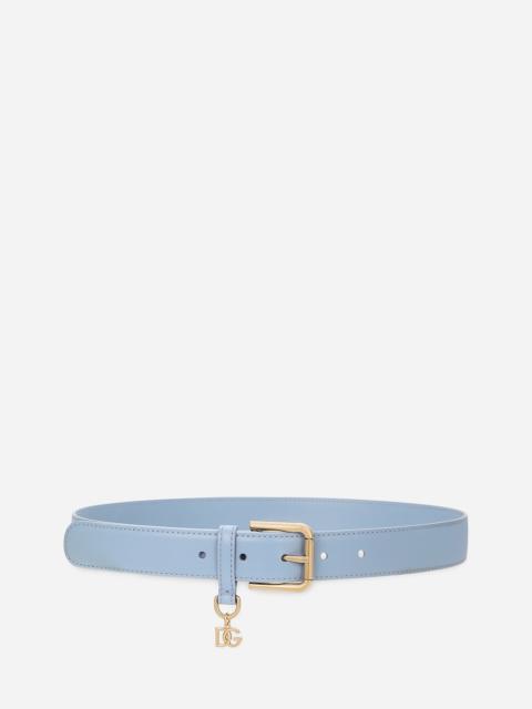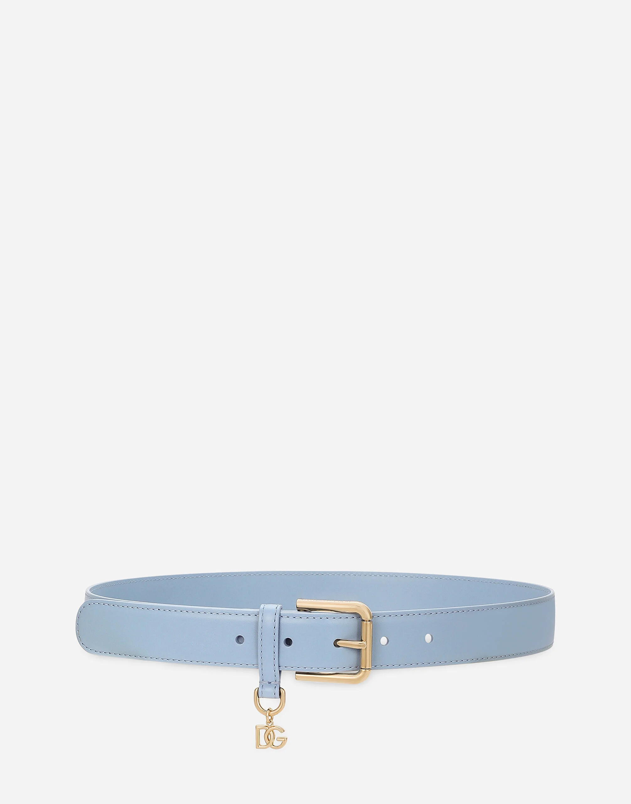 Iconic and contemporary, the new calfskin belt features the DG charm. Calfskin belt with DG charms: • Light blue • The belt strap is 30 mm in height • Rolled buckle and belt loop stop • Made in Italy External composition: 100% Calfskin Internal composition: 100% Calfskin
