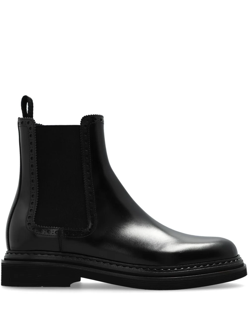 perforated-detail Chelsea boots Highlights - Black - Calf leather - Smooth grain - Slip-on style - Low block heel - Perforated detailing - Elasticated side panels - Pull-tab at the heel - Ankle-length - Round toe - Leather lining - Rubber sole Made in Italy Composition Leather 100% SIZE & FIT Measurement HEEL 1.57 in(4 cm) Sole height 1.18 in(3 cm)
