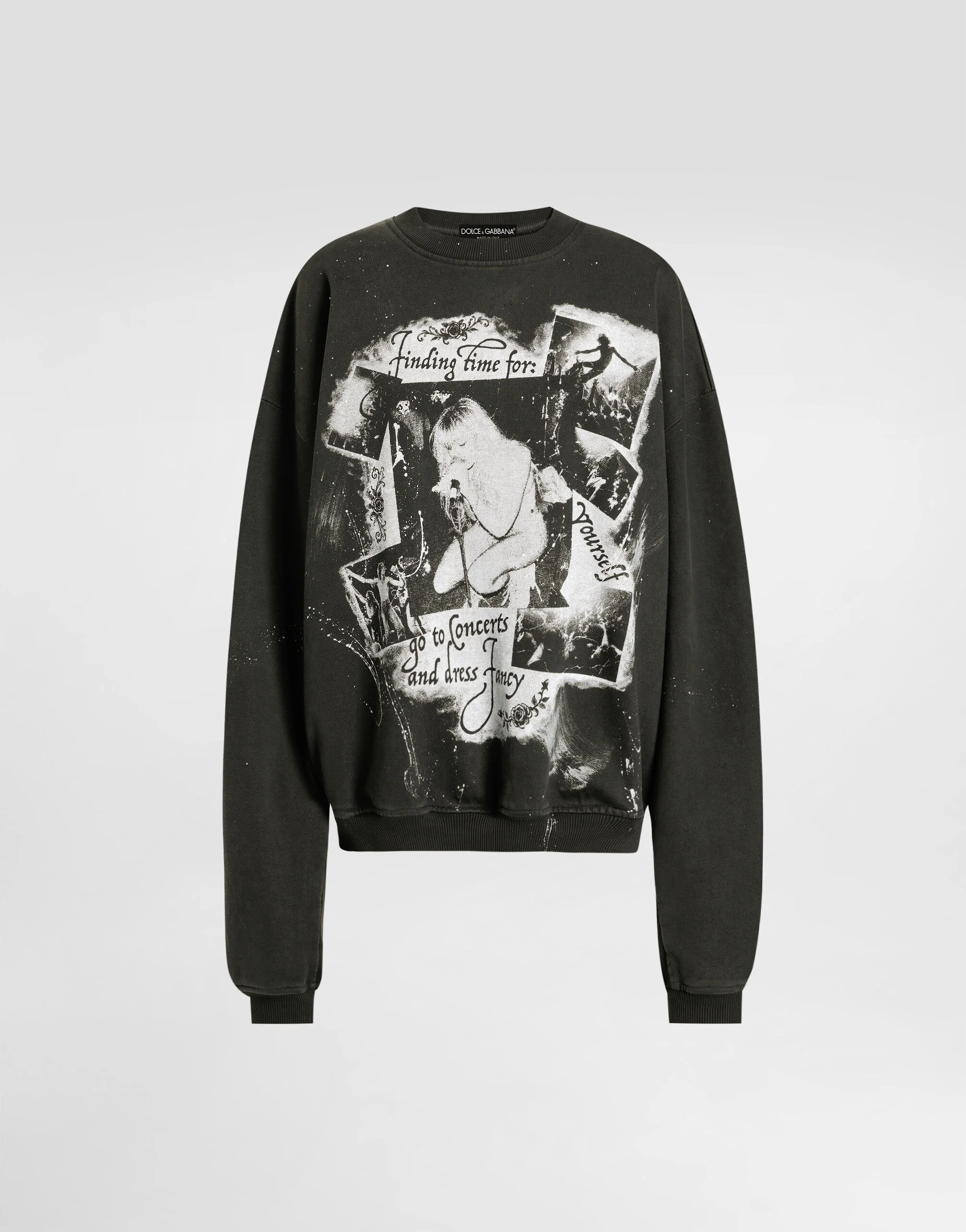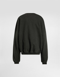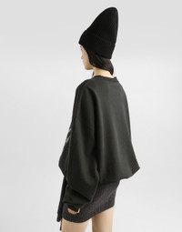 In the Fall/Winter 2025 Fashion Show Collection, shearling jackets, in fur-free versions, reveal slip dresses and create contrast' plays while denim welcomes fabric or Leo print inserts. Sweatshirts are the result of long experimentation with volumes. Evening looks become precious thanks to dresses with special embroideries and luminous touches of sequins and crystals. Sheepskin inserts also unite hats, shoes, and bags, including those with pockets. This long-sleeved crew neck sweatshirt is an essential piece for those looking for comfort and style. Perfect for casual days, it stands out for its quality and modern design. Cotton crew neck sweatshirt with print: • Black • Crew neck • Dropped shoulder • Hip pockets • Total length 70 cm on size 40 IT • Sleeve length 87 cm on size 40 IT • The model is 175 cm tall and wears size 40 IT • Made in Italy External Composition: 100% Cotton
